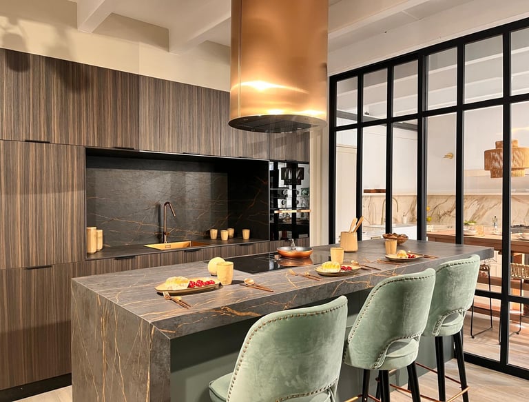 Fabricamos cocinas, armarios y mobiliario a medida con acabados únicos y materiales de primera calidad.